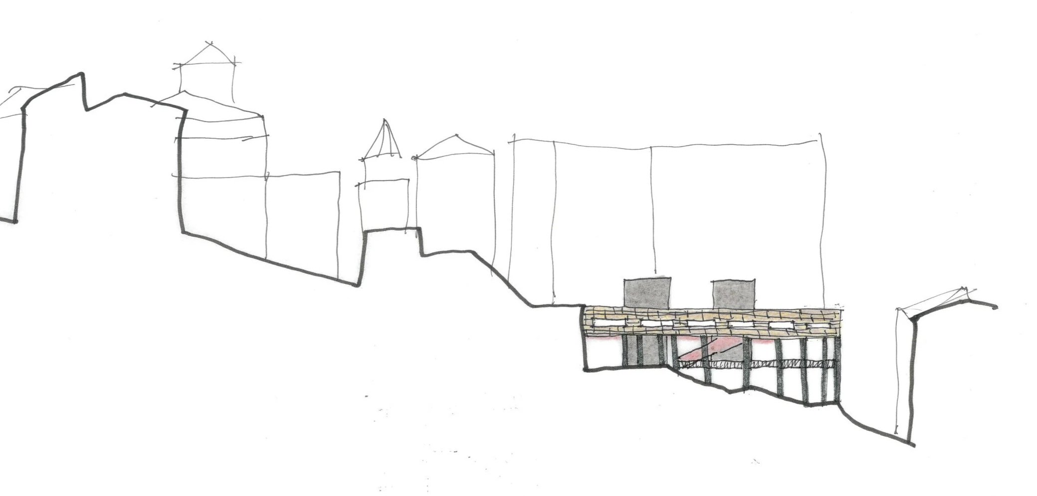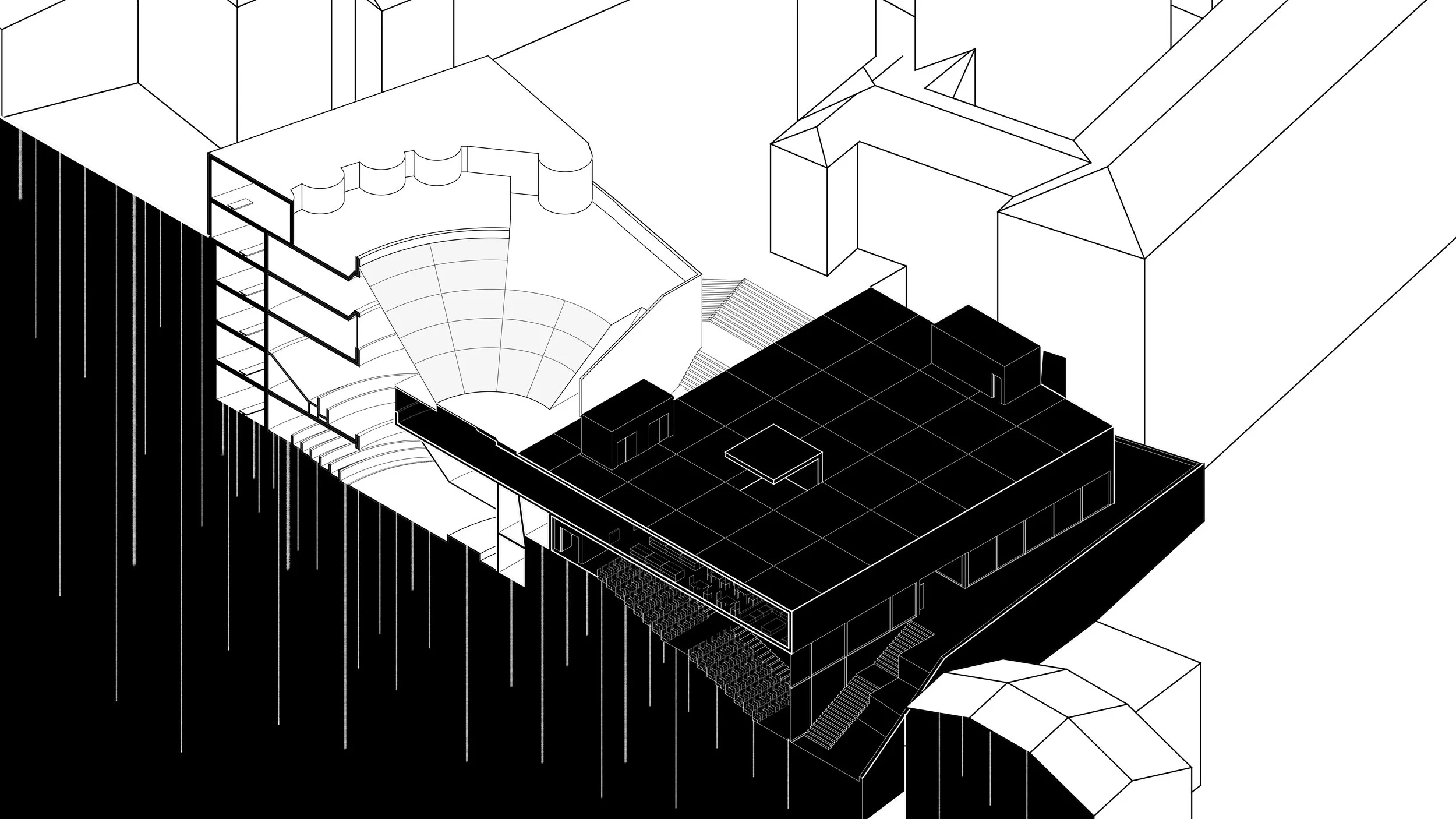 The project proposes the insertion of a new piazza atop an educational wine making school that is an extension to the historic University of Urbino questioning relationships of inside/outside and public/private. The steep hill side town’s topography fragments the university and surrounding residential district from the city’s primary social network. The insertion of a new piazza elevated to the level of the street seeks to reimagine the typology of the piazza through moving rooms that rise to the surface or descend into the building depending on spatial and programmatic demand; retaining its civic functionality and dynamic flexibility, while opening the chance for interactions between students and public. These moving elements allow the public space to constantly reconfigure without demolition or permanent fixtures, creating a flexible civic ground that supports markets, performances, daily gathering, and student life while directly serving the educational and production spaces beneath. The piazza is situated on top of an extension that connects directly into Giancarlo De Carlo’s school: the Magistro.